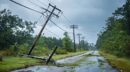 Power lines fallen after a storm, emergency situation, public hazard