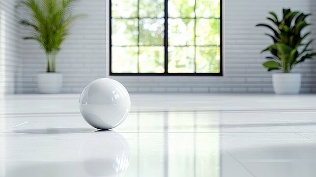 Practicing barre workout holding blue fitness balls by sunlit window with dotted light