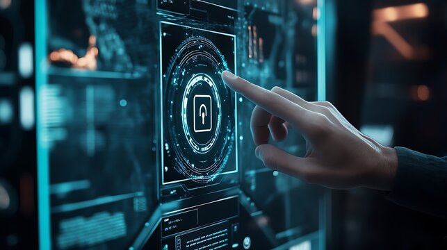 Neon teal cyber hud interface with diagonal glowing slashes, floating id tags and avatars