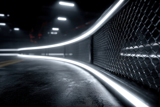 Minimal metallic grid with soft glowing reflections in a futuristic design