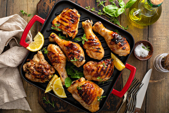 Sweet honey glazed grilled chicken thighs and drumsticks.