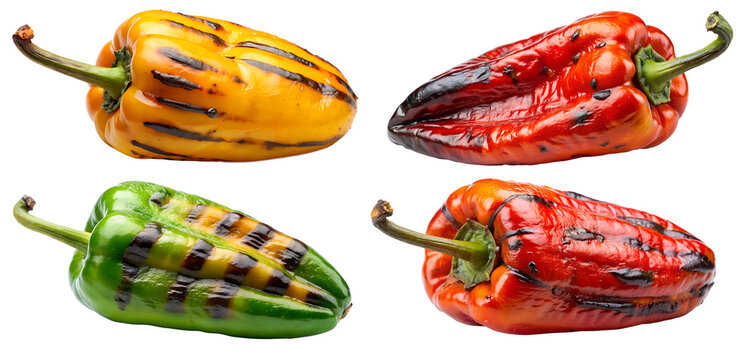 Grilled red peppers on white background
