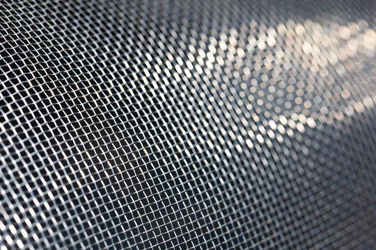 The texture of the metal mesh on a white background. Torn steel, metal mesh with holes