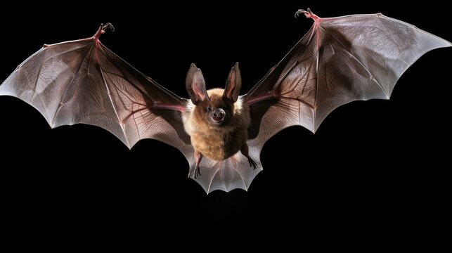 Close-up view of a bat hanging upside down from a tree branch in a moonlit forest