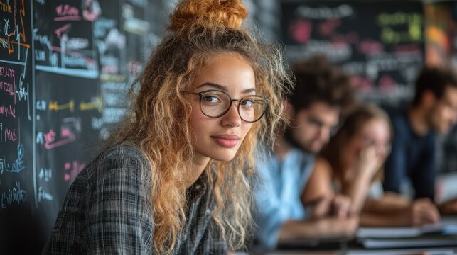 Experienced and professional teacher using a projector to display educational content and engage a group of students in an interactive learning session or training program at a school university