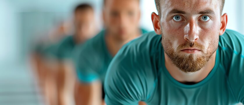 Group of Diverse Individuals Engaged in Core Strengthening Exercise in Modern Fitness Studio with Natural Light and Motivating Atmosphere