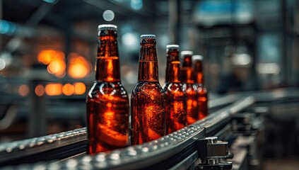 Isolated amber beer bottle glistening with condensation, ready to be filled with beverage