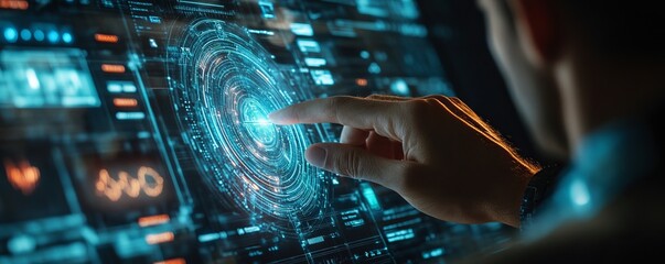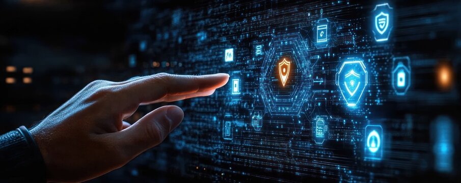 Cybersecurity Interface Interaction with Holographic Elements in Futuristic Digital Environment