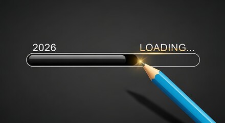Loading bar 2026 with pencil on dark background, new year concept