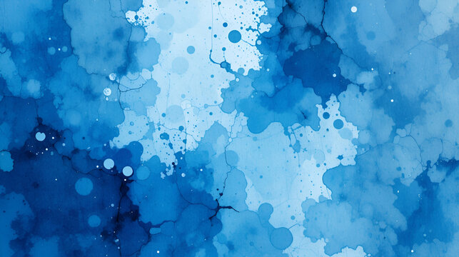 Blue water wash surface texture grudge background. Grunge aquarelle watercolor blue abstract stains splatter splashes, watercolor blue.