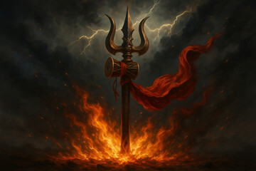 Mythological thunder god commanding storm with lightning