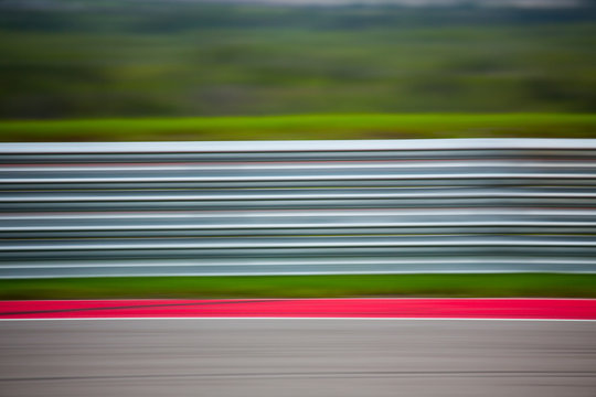 Beautiful shot of a highway guardrail on the side of a road with trees in the background