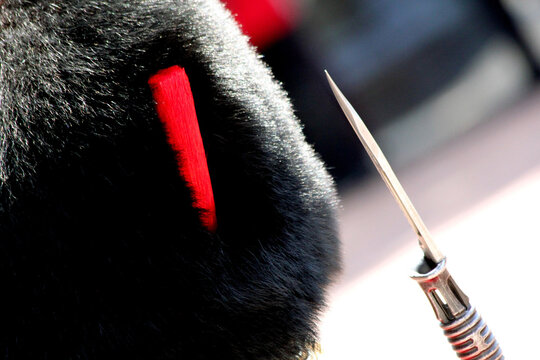 Close-up of a British guardsman's uniform.