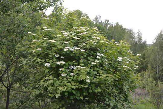 guelder rose blossom in park viburnum