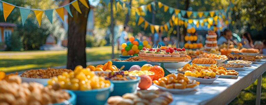 Joyful outdoor family gathering with shared meal in garden