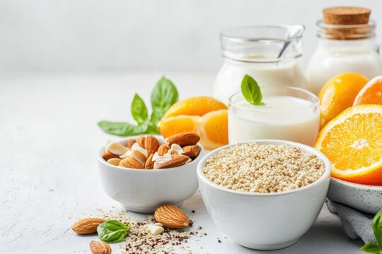 Trainer guiding female athlete stretching overhead with performance metrics, gym equipment