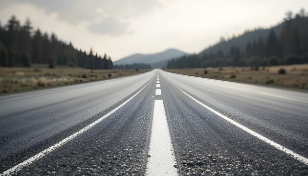 Curved road vanishing into darkness with autumn leaves scattered on the roadside; asphalt surface and white lines guide into the night
