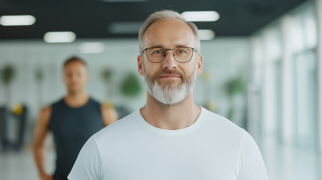 Senior man building strength on pilates reformer using resistance straps in bright studio