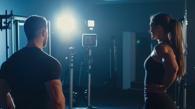 Video generation for a fitness trainer guiding a client through a workout. Featuring health and motivation