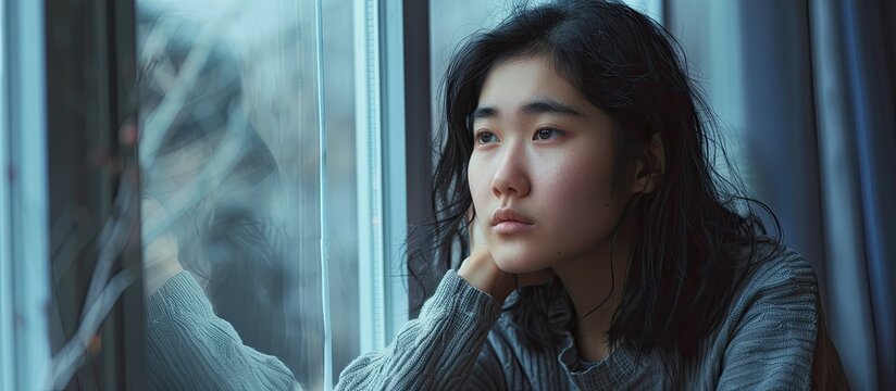 Exhausted stressed woman sits in bedroom hanging head in helplessness feels mental pressure, uncertainty. Tired anxious female alone at home overwhelmed worried by thoughts. Depression, inner tension