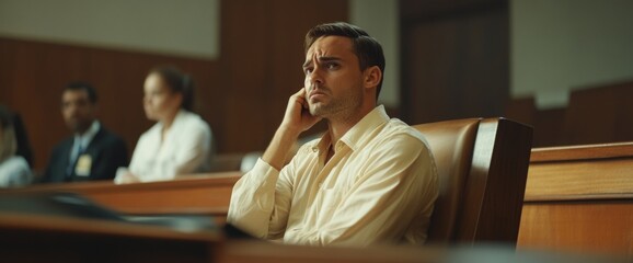 Unhappy Caucasian male prisoner feeling guilty about crime, thinking in cell