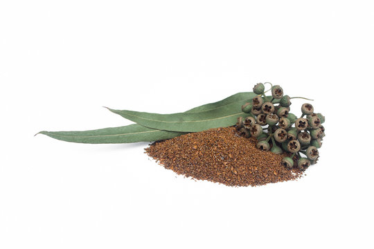 natural plants and flowers. Photos of eucalyptus tree flowers and seeds.