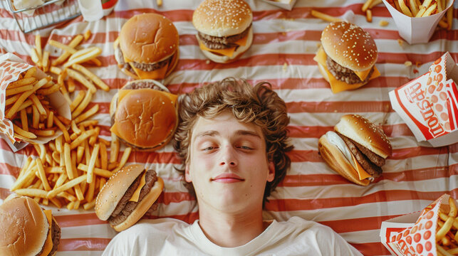 A young attractive guy is resting on his bed at home. Love and romantic mood.