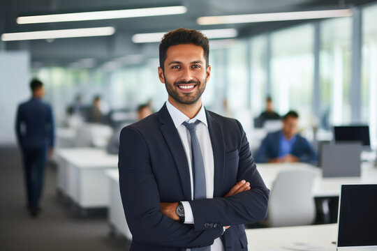 Young and confident businessman standing at office