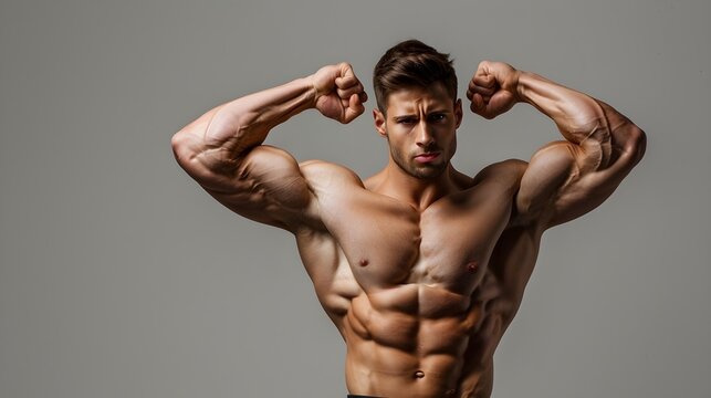 Muscular Fit Guy Flexing Biceps (Generative AI)