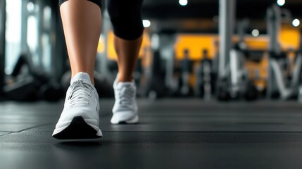 Focused woman on treadmill in gym embracing healthy lifestyle