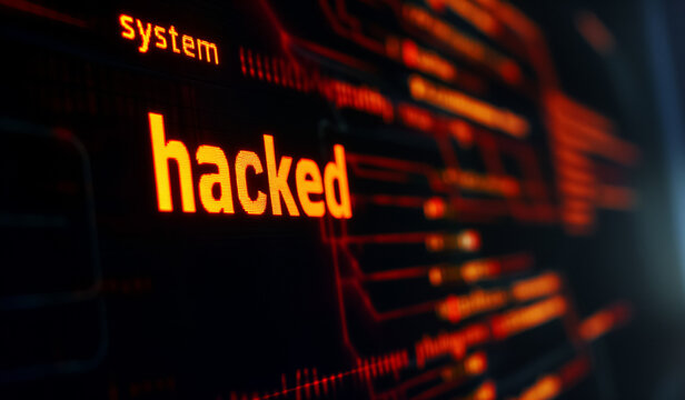 Cybersecurity breach concept with hacked text