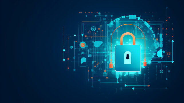 Cybersecurity concept with digital padlock and code background