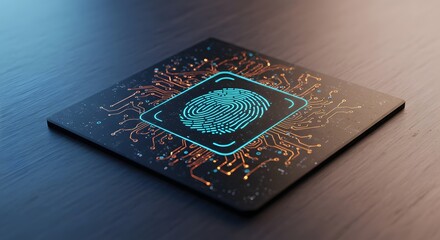 Biometric scanner interface with fingerprint recognition in high detail, surrounded by digital encryption codes
