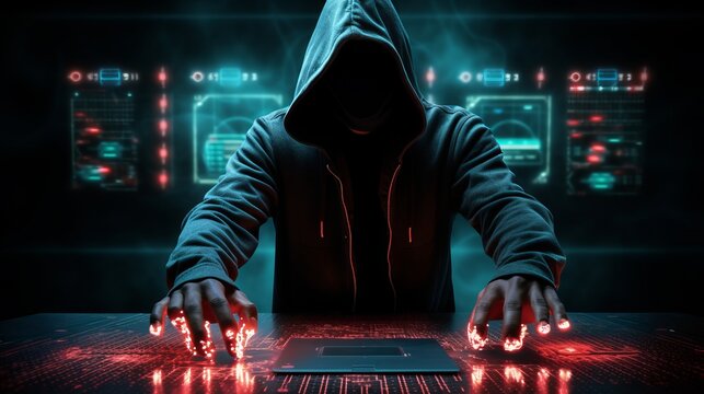 Hacker in hoodie engaged in cybersecurity breach