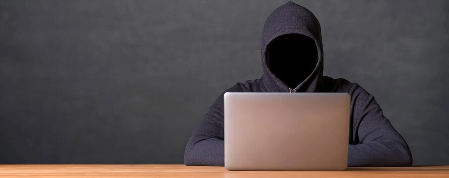 Anti-Tracking Surveillance A hooded figure sits at a desk with a laptop in front of them, creating an atmosphere of mystery and intrigue against a dark background.