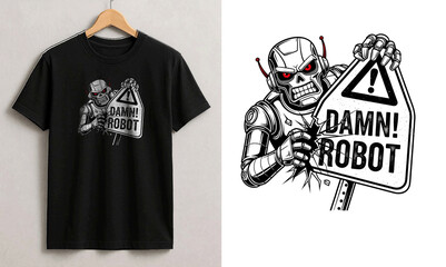 Damn Robot Typography T-Shirt Design with Futuristic AI Theme, Bold Tech Slogan for Streetwear, Geek, Gamer and Sci-Fi Apparel