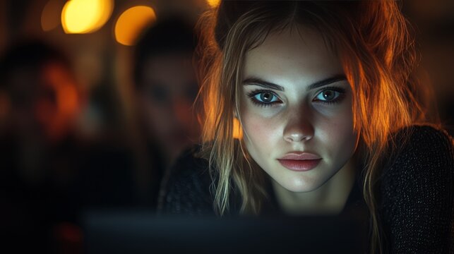Focused Young Woman Engaged in Digital Hacktivism Environment
