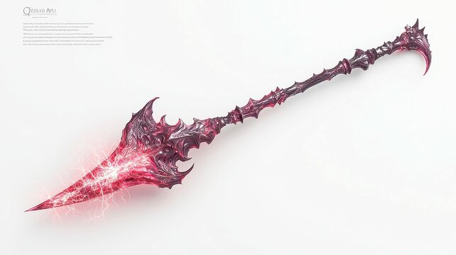 A sleek, silver halberd, its blade gleaming in the light, stands poised and menacing, its shaft adorned with intricate engravings. The halberd is sharply focused against a pristine white background,