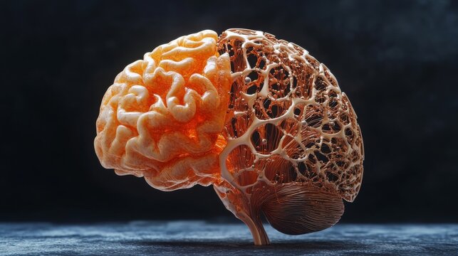 Futuristic brain model with glowing neural filaments