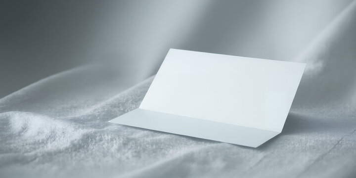 Blank White Card Folded in Half on Textured Gray Fabric graphic design