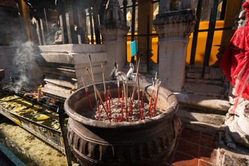 Incense sticks in pots to hallow of  Wat Phra That Lampang Luang in Thailand