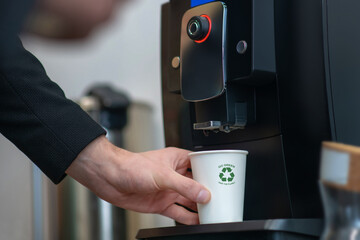 Finger pressing  green accept button on virtual touchscreen on light beige background. Decision making business technology concept.