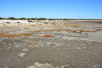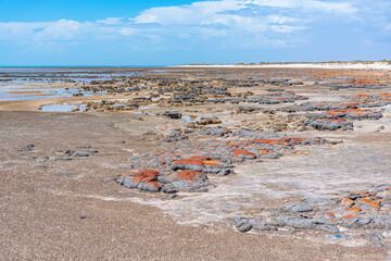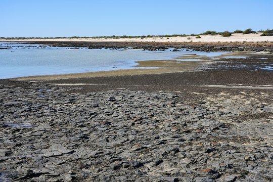 View of microbial mats stromatolites at the Hamelin Pool in Shark Bay, World Heritage area, Western Australia