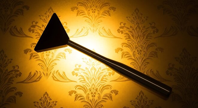 Neurological reflex hammer on classic gold pattern wallpaper background