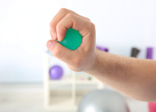 Male hand with stress ball in clinic
