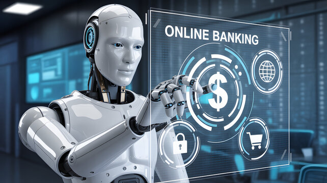 Robotic hand interacting with futuristic big data interface, unlocking insights worldwide, modern technology