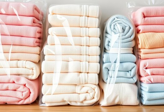 Soft, Folded Light Blue Towels on White Surface