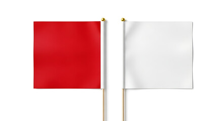 Two small rectangular flags one red and one white on sticks isolated on white background