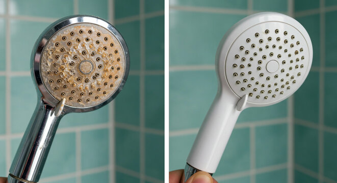 Shower head cleaning before after comparison calcium buildup removal home improvement water scale