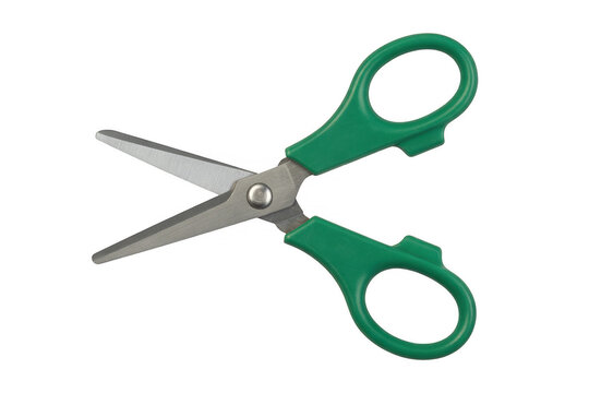 Pink handled scissors cutting green plant leaves